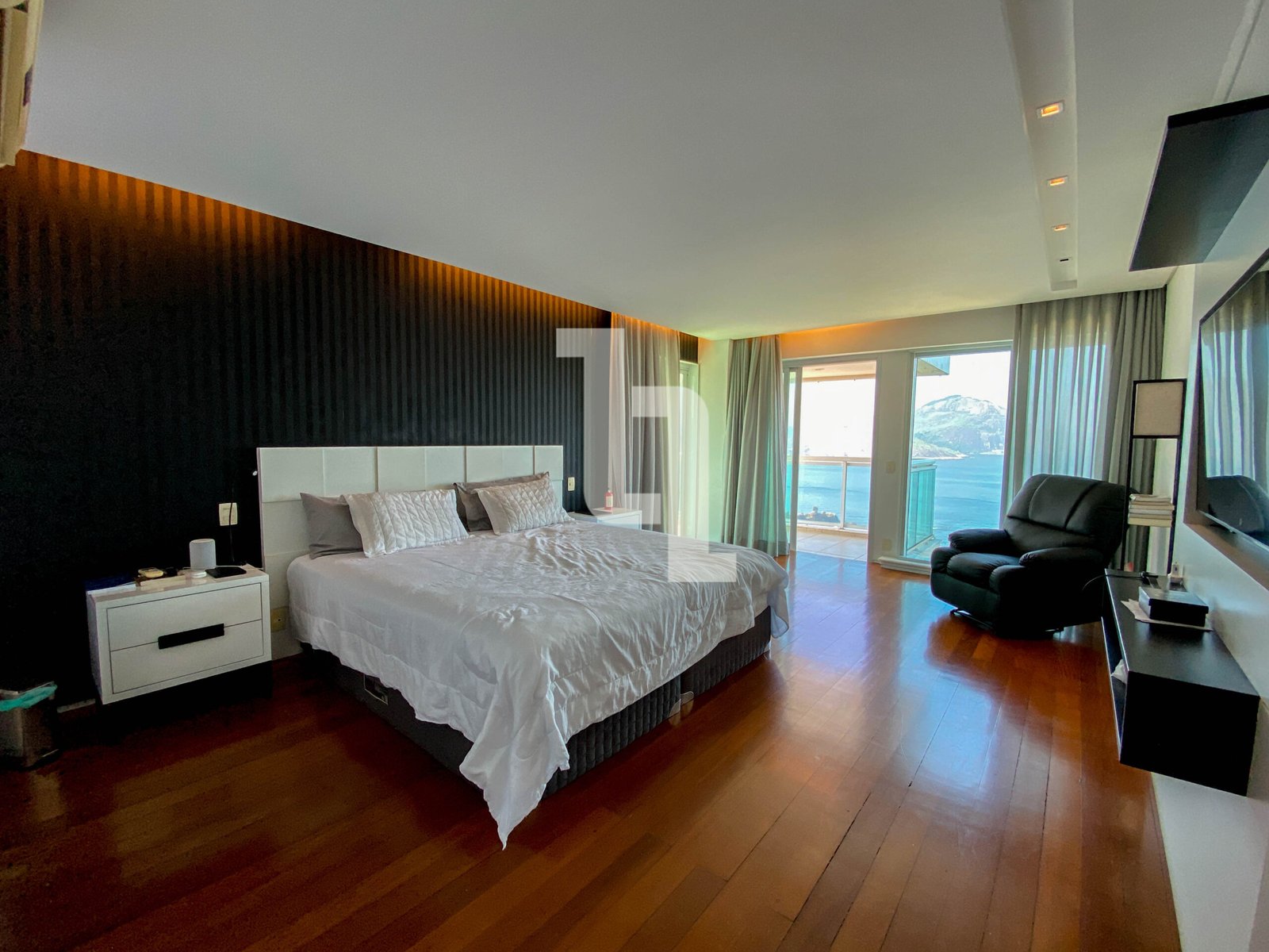 – Cinco quartos espaçosos, sendo 4 suítes com varandas individuais, elegantemente decorados. A suíte master conta com dois closets e banheira de hidromassagem com vista estonteante;